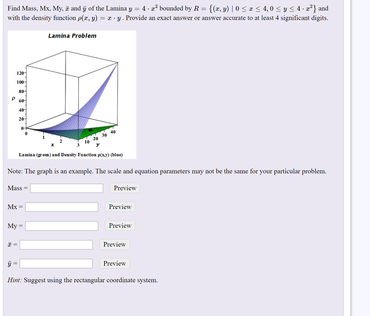 Solved Find Mass Mx My A And Y Of The Lamina Y 4 X Chegg Com